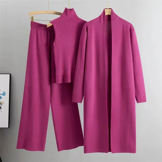 3 Piece Women Cardigan Tracksuits Fashion Knitted Pant Set Winter