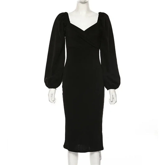Elegant Square Neck Midi Dress for Women