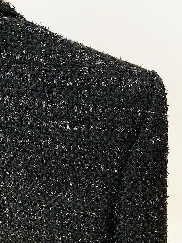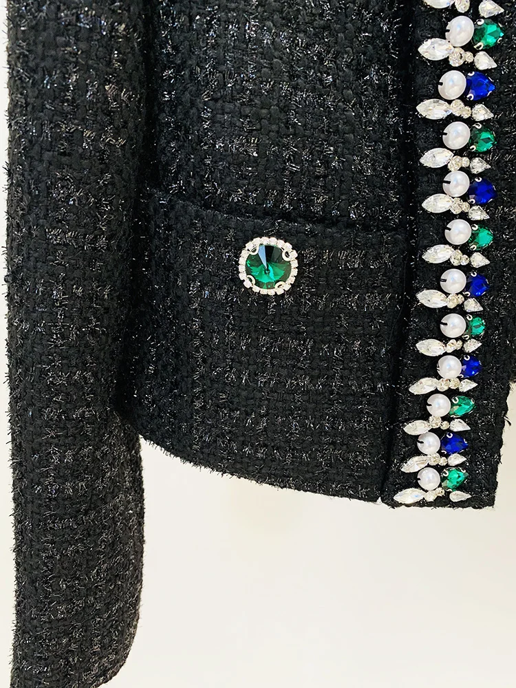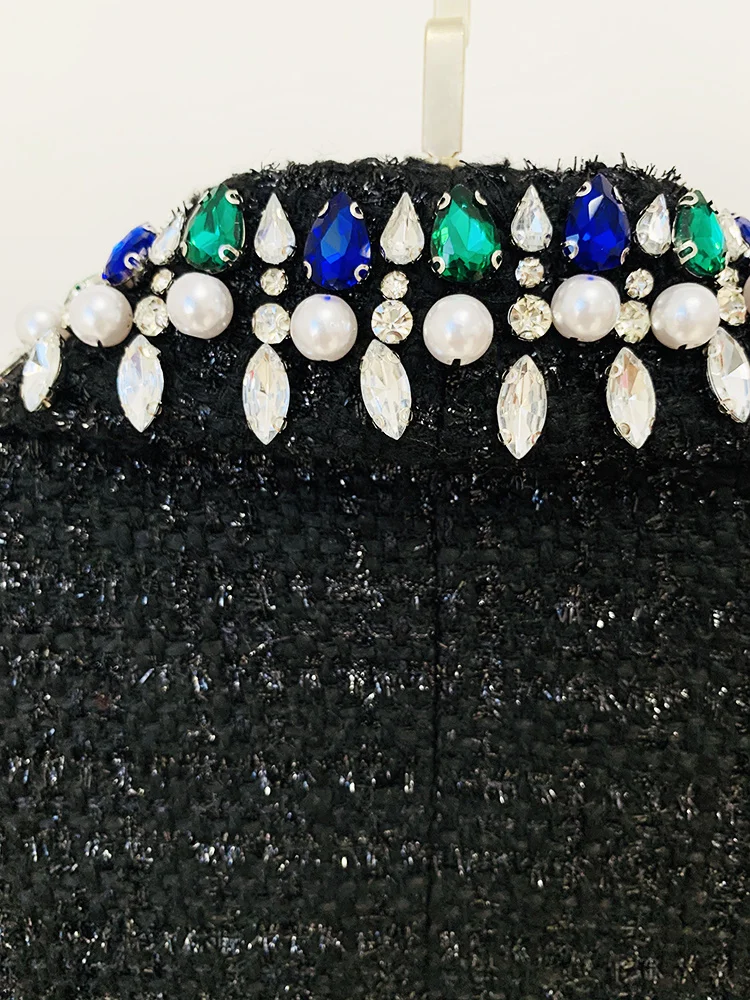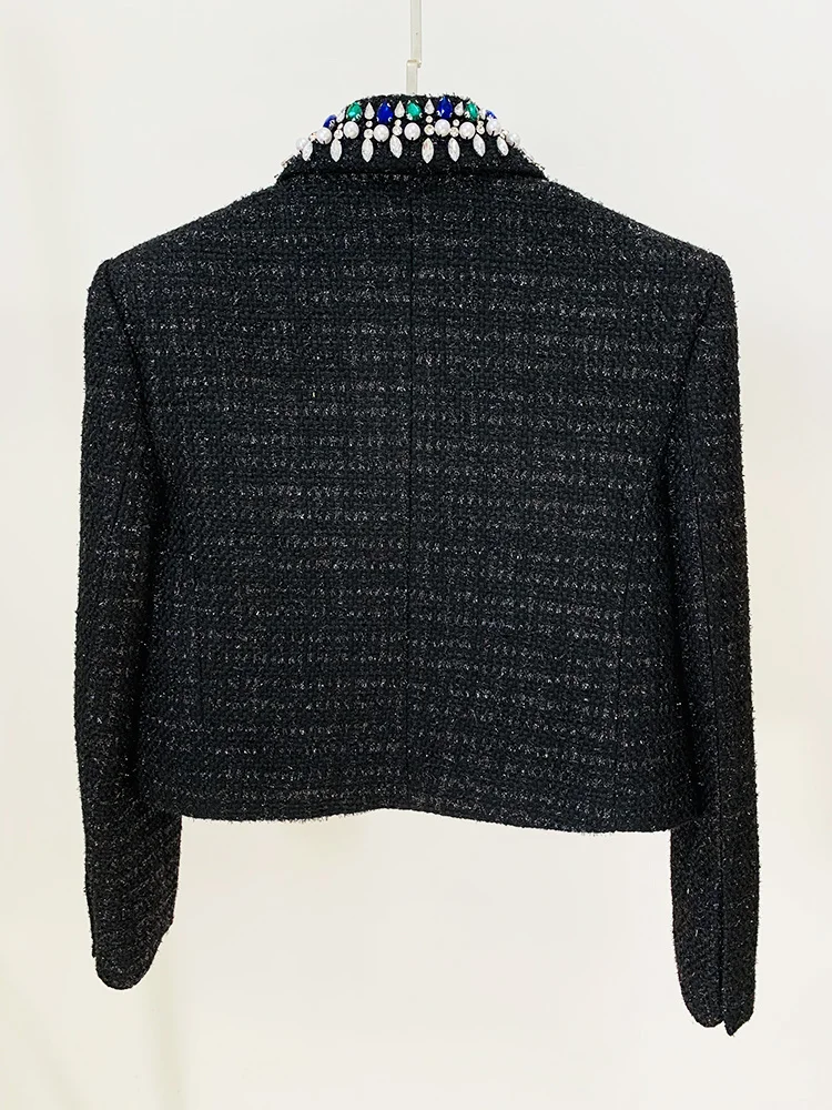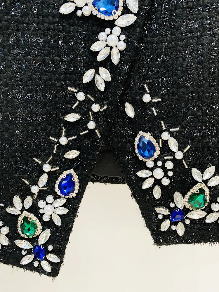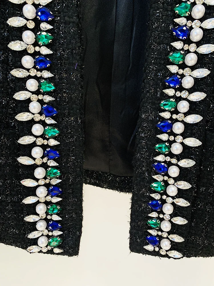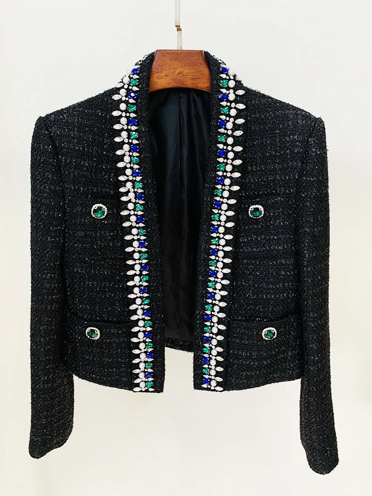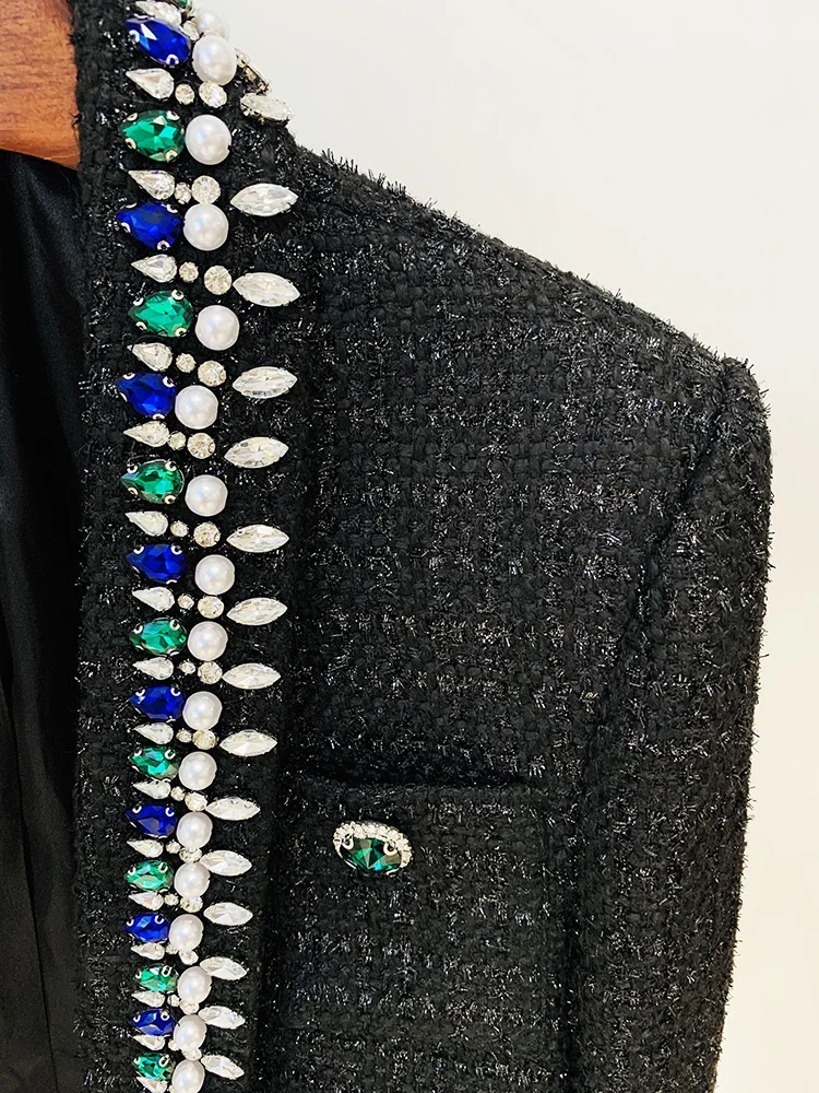 Blazer Women's Stunning Strass Diamonds Beading Shawl Collar Tweed Jacket